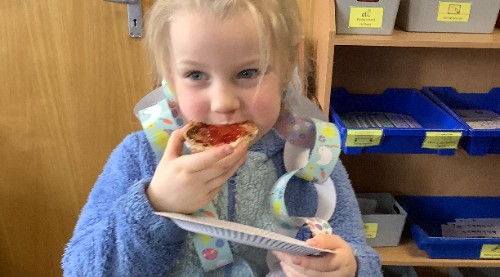 on how to make a jam sandwich. They then went in groups to the local bakery and shops to buy ingredients. The children also practiced their clear and